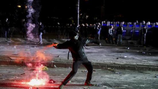 وردت قوات إنفاذ القانون باستخدام المواد الحارقة والصلبة.