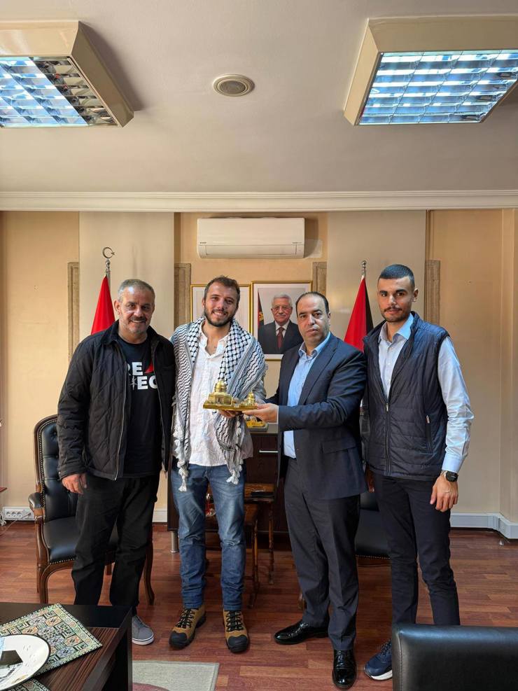 القنصل الفلسطيني في اسطنبول يستقبل الناشط البرازيلي تياغو آفيلا