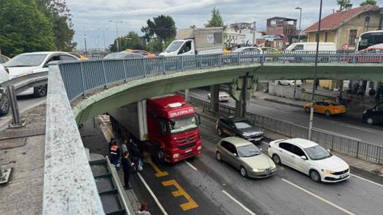 تعطلت الشاحنة التي كانت متجهة من شارع غازي مصطفى كمال باشا باتجاه أكساراي أثناء مرورها تحت الجسر.