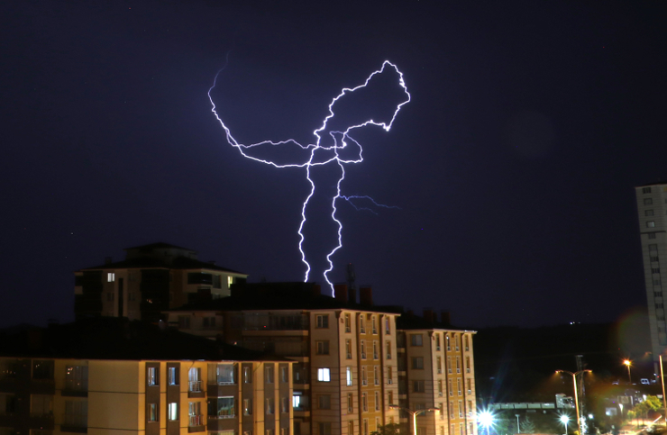 وضرب البرق من وقت لآخر أجزاء مختلفة من المدينة وأضاء السماء بشكل كبير.