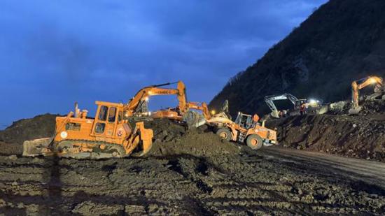 وأشار إلى أن الطريق مغلق أمام حركة المرور بسبب الانهيار الأرضي.