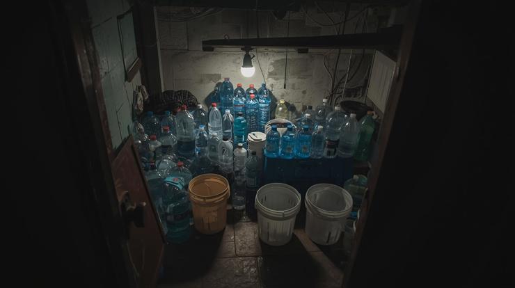 من داخل شقة في إسطنبول مع أوعية مياه مخزنة