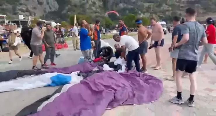 في التفاصيل: بعد أن أقلعت مظلّتان – أحدهما كان طيارًا ومرافقًا (تاندِم) – من منطقة الإقلاع المرتفعة في جبل Babadağ، باتجاه هبوط فوق شاطئ Belcekız، حصل تصادم بينهما في الجوّ خلال مرحلة الهبوط، ما أدى إلى فقدان الطيارين والمرافقين السيطرة على الهبوط، وسقوطهم بشكل مفاجئ.