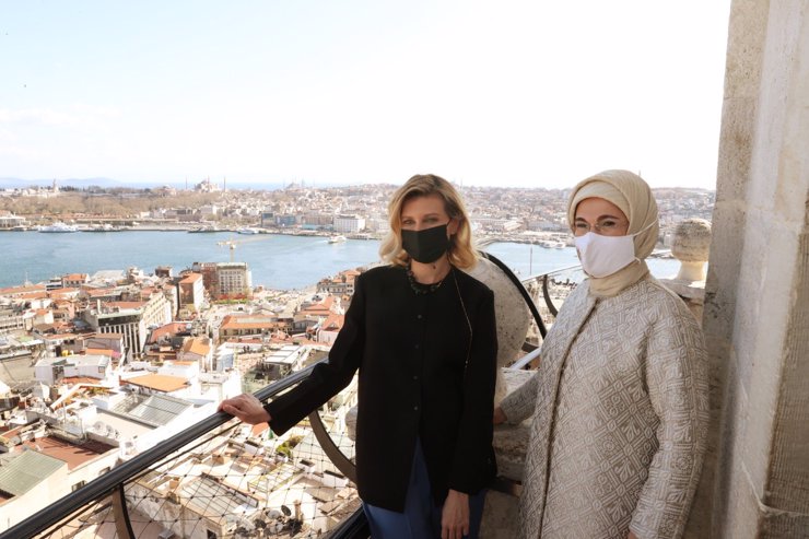 بالصور: السيدة أمينة أردوغان تصطحب سيدة أوكرانيا الأولى إلى برج غلطة التاريخي