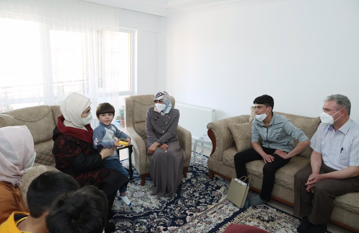 زارت السيدة الأولى أمينة أردوغان، عقيلة الرئيس التركي رجب طيب أردوغان، اليوم الخميس، عائلة سورية لاجئة مقيمة في العاصمة أنقرة.
