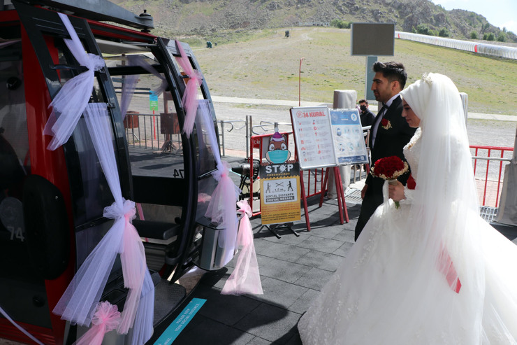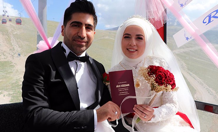 ووفقا لما ذكرته وكالة “دمير أوران” التركية، فقد تم عقد القران على متن تلفريك، حيث تم تزيين إحدى عرباته خصيصًا لهما، وانطلق بهما رفقة الشهود.